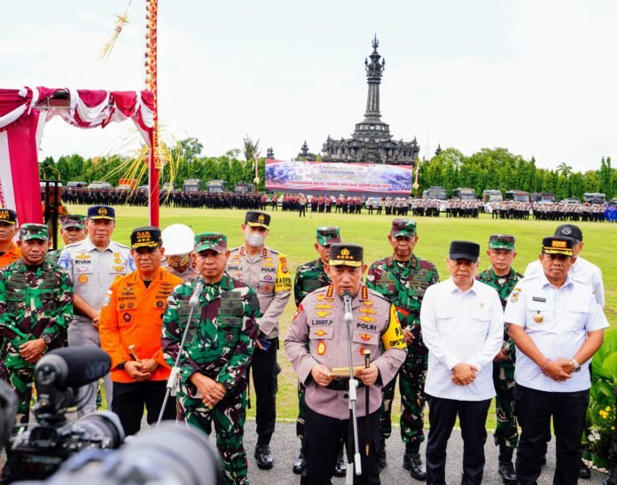 Borgolnews86.com || Denpasar – 20 Desember 2024 – Kapolri Jenderal Listyo Sigit Prabowo menyampaikan amanat dalam pelaksanaan Operasi Lilin 2024 yang digelar di Lapangan Puputan Margarana Renon, Denpasar, Bali. Operasi ini melibatkan 141.605 personel gabungan, termasuk 75.447 personel Polri, guna menjamin keamanan dan kenyamanan masyarakat selama perayaan Natal dan Tahun Baru.